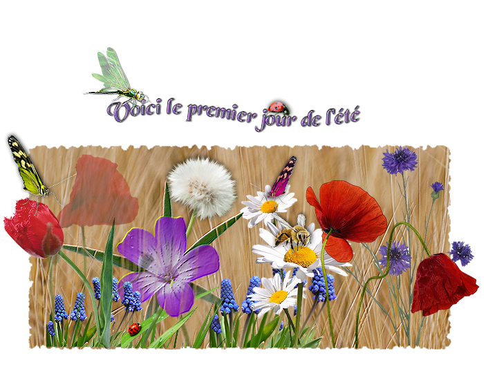 une jolie composition florale , ça sent l'été, on s'en réjouit car il fait trés beau aujourd'hui , je suis sortie tout l'aprés-midi , j'ai été prendre des couleurs !! lolEcrire un commentaire